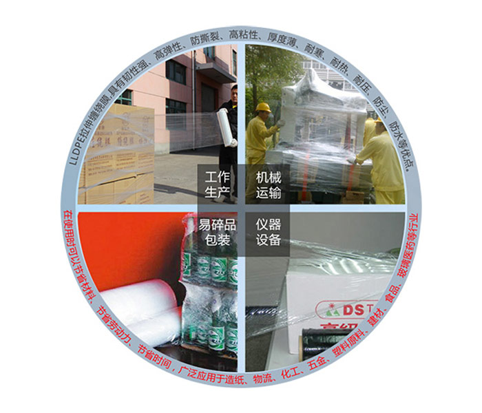 強輝高品質(zhì)拉伸膜具有透明度高,韌性強,高彈性、高粘性、防水防潮,耐寒耐熱的優(yōu)點,